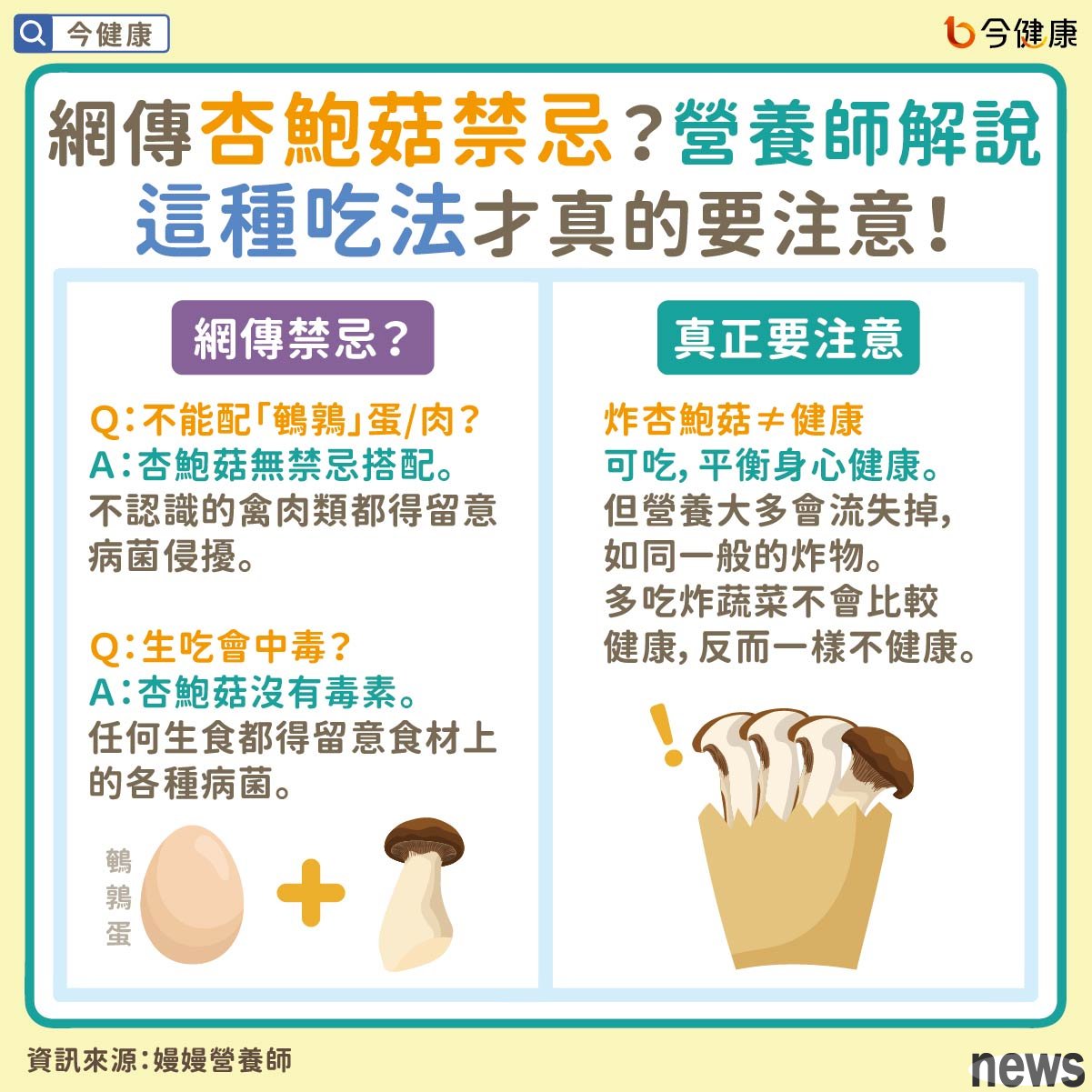 It is OK to eat this, but one thing to note: fried food is often found in the cooking of apricot mushrooms. For this, the nurse reminds that although it is okay to eat fried food occasionally under physical and mental balance, if you think that eating fried food with more vegetables can be eaten more often, you may be disappointed with this idea. Nutritionists explain that whether it is apricot mushroom or any vegetables, the nutrients will be greatly lost after being fryed. It can almost be said to be "pure fried food". For example, the predecessor of potatoes was also a very nutritious potato. Therefore, it is good to eat occasionally to be healthy, but it is not a problem to eat more vegetables because you have more vegetables.