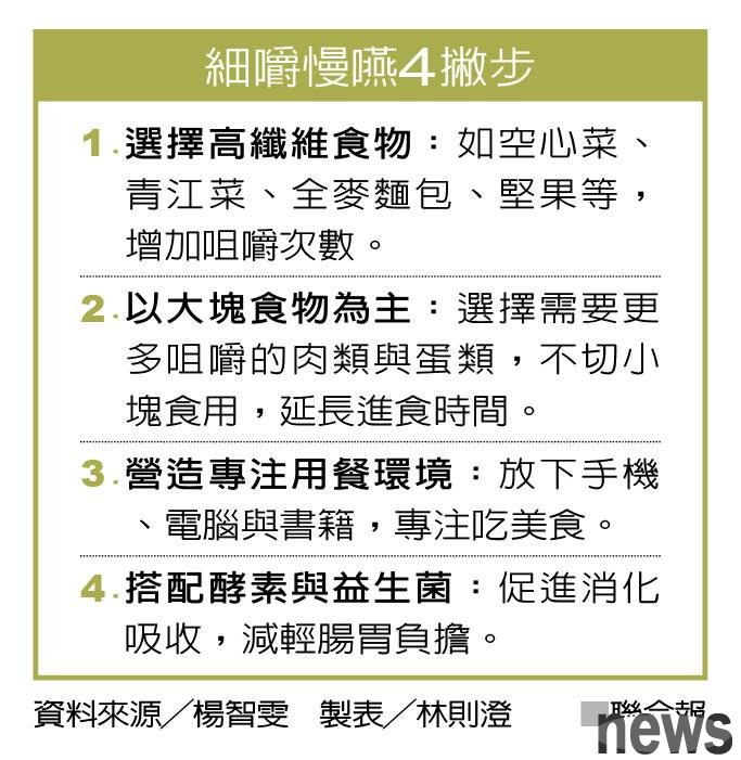Research on "Obesity" Obesity journal shows that chewing slowly can not only increase heat consumption, but can even improve blood sugar problems. Yang Zhiwen pointed out that chewing and slow chewing is not limited to patients who have undergone gastric surgery, and is equally important to ordinary people.