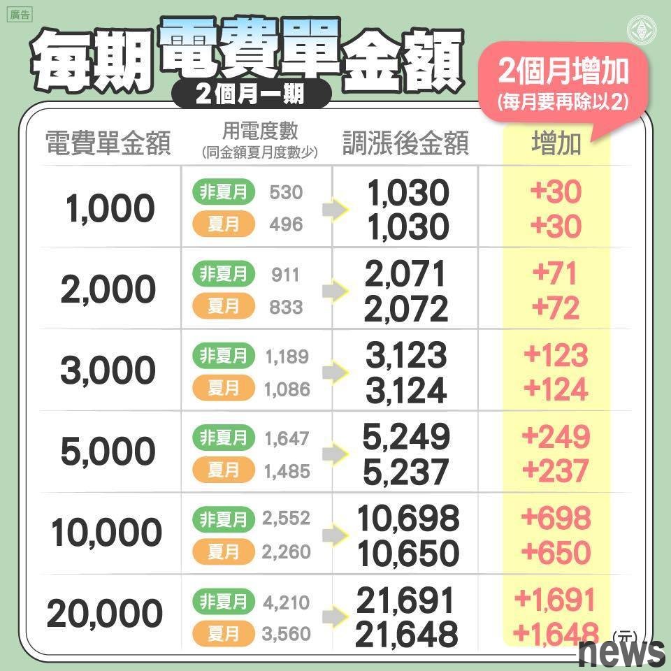 electric price plan is calculated based on the monthly electric degrees. The more electricity degrees are used, the more gold will increase. However, most people should be very unfamiliar with this so-called "volatility" . "Taiwan Electric Power Fan Group" has released 2 picture cards. If you want to know how much your own phone will increase, first find out the old phone bill at home. From the past billing amount, you can quickly calculate how much it will increase this time.