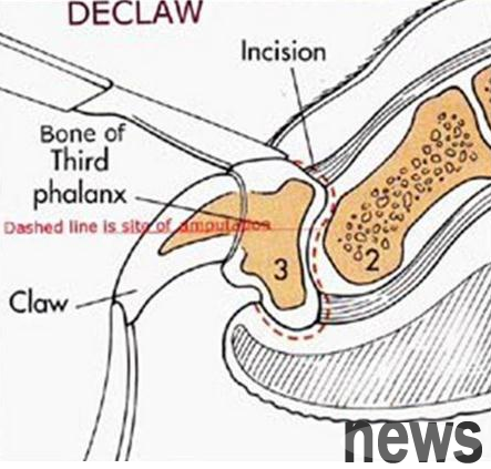 ▼But in fact, "declawing" is very cruel! The doctor cuts off the cat's first joint, as shown in the red dotted line in the picture below