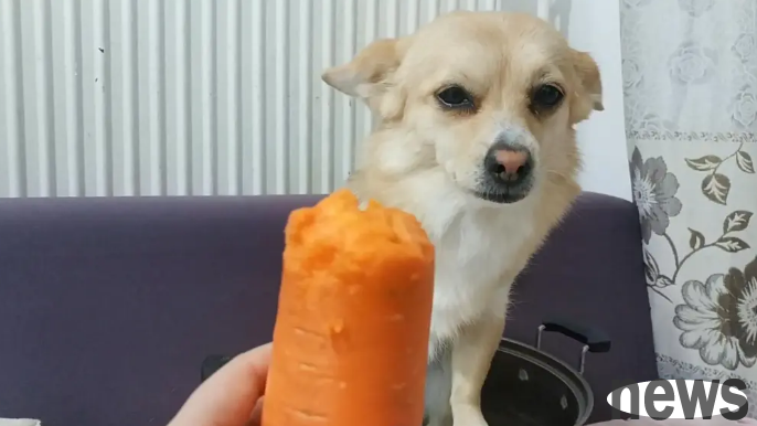 Carrots are rich in vitamin A and cellulose, and have a good health care effect on dogs' vision, skin and digestive system. The carrots can be cut into small pieces and fed as snacks.