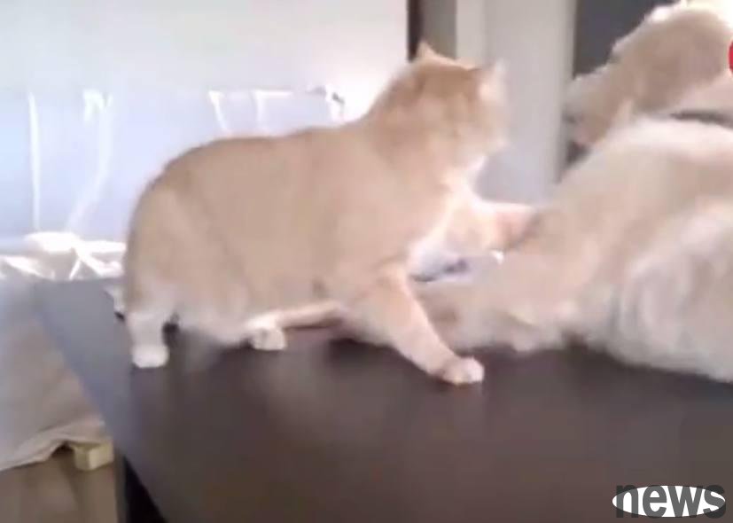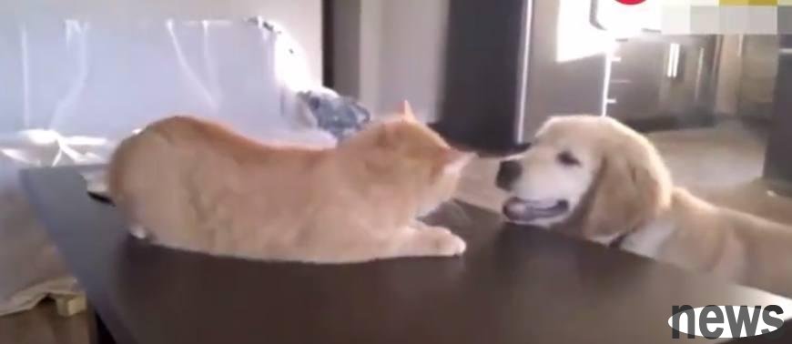 The cat stood up suddenly, turned around and slapped the little golden retriever in the face. Fortunately, the little golden retriever escaped in time, otherwise his appearance would have been really disfigured, haha. This dog is really cowardly. It is no different from raising a Erha. They are both bully and fearful of the strong.