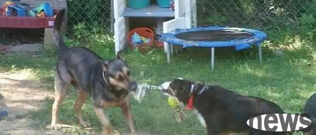 "The Daxter on the left is a family working dog. The Max on the right is the janitor. They are now dedicated to playing tug-of-war with each other. "