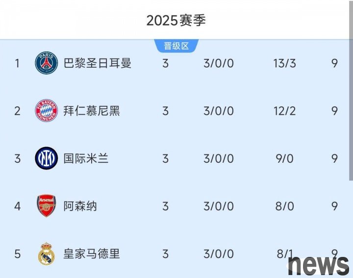 The five major leagues have finished another round. The current top teams are: Arsenal, Real Madrid, Bayern, Paris and Naples. Among them, the top four teams also have unbeatable records in the Champions League and occupy four of the top five spots...