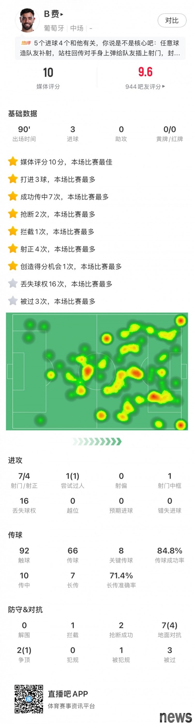 In the 6th round of Group F of the European Group Stage of the World Cup Qualifiers, Portugal defeated Armenia 9-1 at the Dragon Stadium. The top spot in the group went directly to the World Cup in the United States, Canada and Mexico. In this game, B Fei contributed a perfect performance, scored a hat trick, and received a perfect score of 10 points after the game.