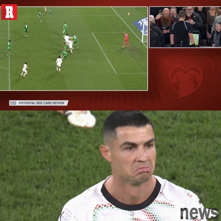In the second half of Portugal vs. Ireland, Ronaldo got red because of his elbow action!