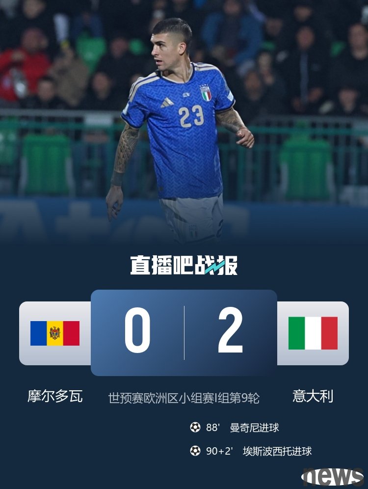 Italy defeated Moldova 2-0 in this round. With Norway also winning in the same round, Italy can already be said to have missed the chance to advance.
