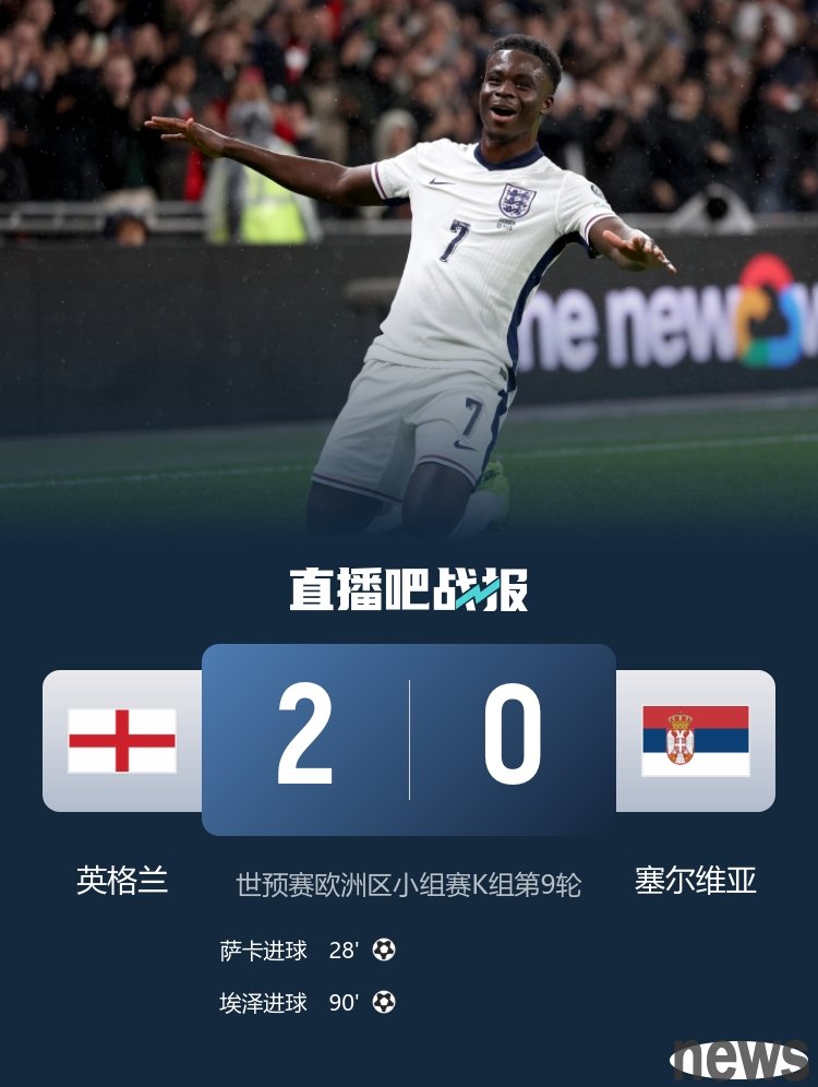 Victory in 7 rounds, scoring 20 goals and conceding 0 goals! England sent Serbia out 2-0. Saka and Eze scored