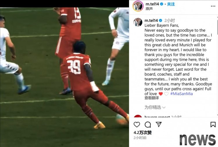 "I really love every minute of playing in this great club, and Munich will always be in my heart. Thank you for your incredible support during my time at the same time, which means a lot to me and I will never forget it."